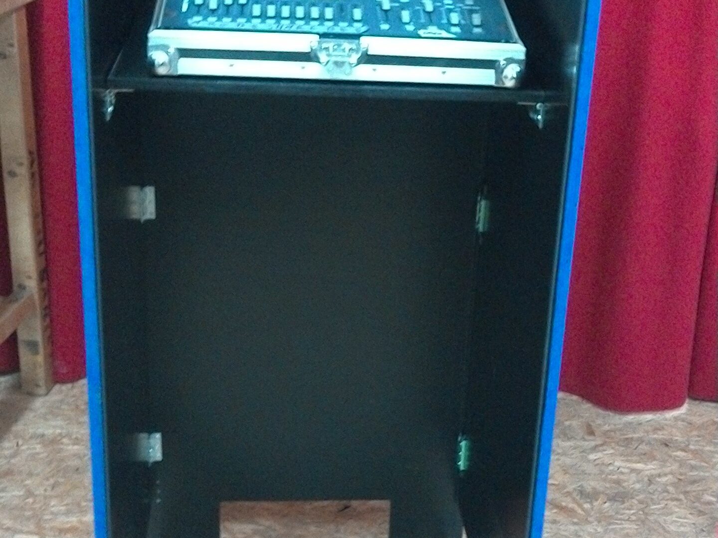 Rackschürze für ein 19´Case mit Ablage für zB. 1 Mischpult Laptop etc. In der oberen Blende ist eine LED Beleuchtung für die Ablage eingebaut. Deshalb auch gut nutzbar als Rednerpult.