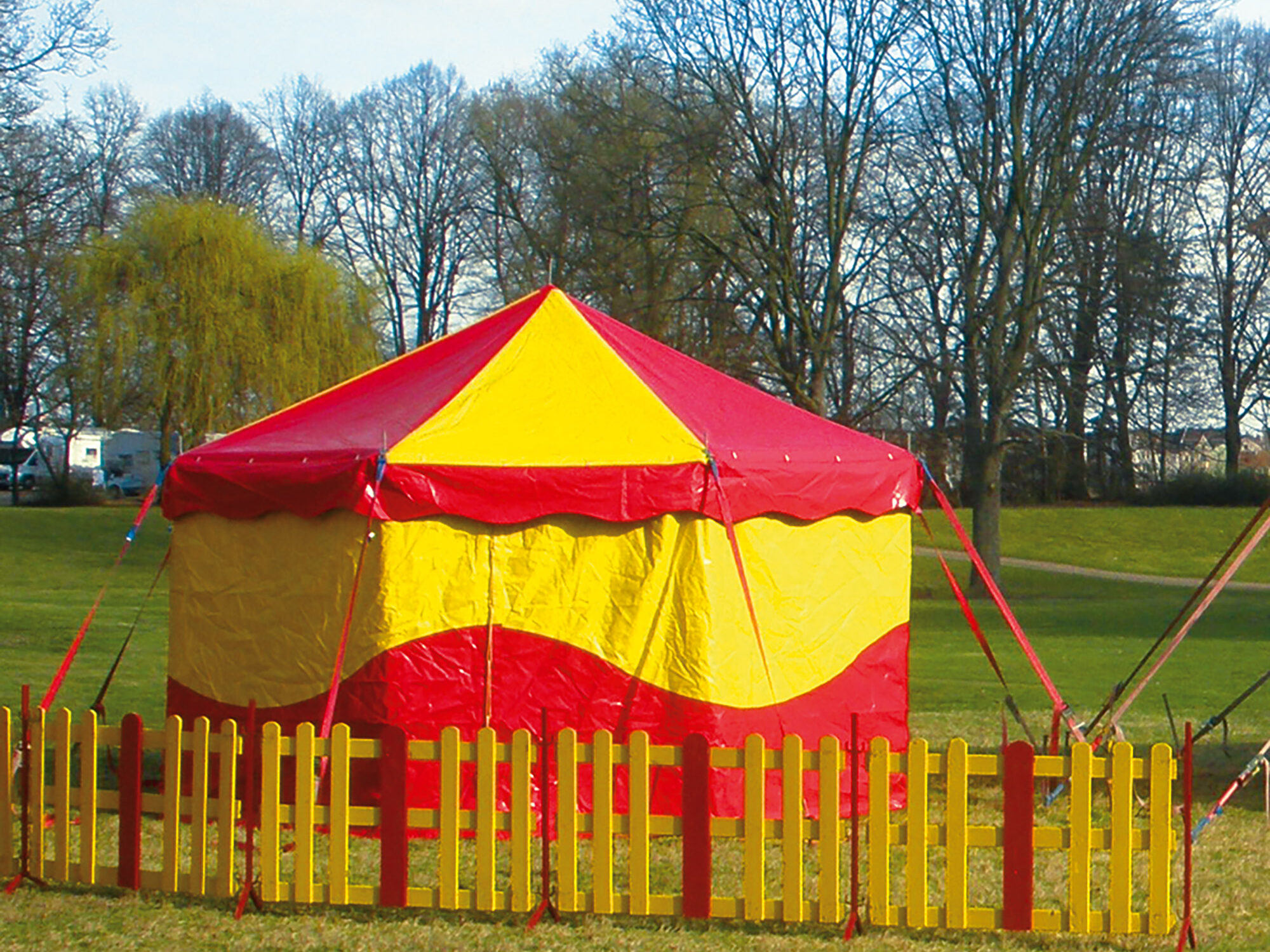 Zirkuszelt 20 m Rund – 314 qmDekozäune in Rot Gelb