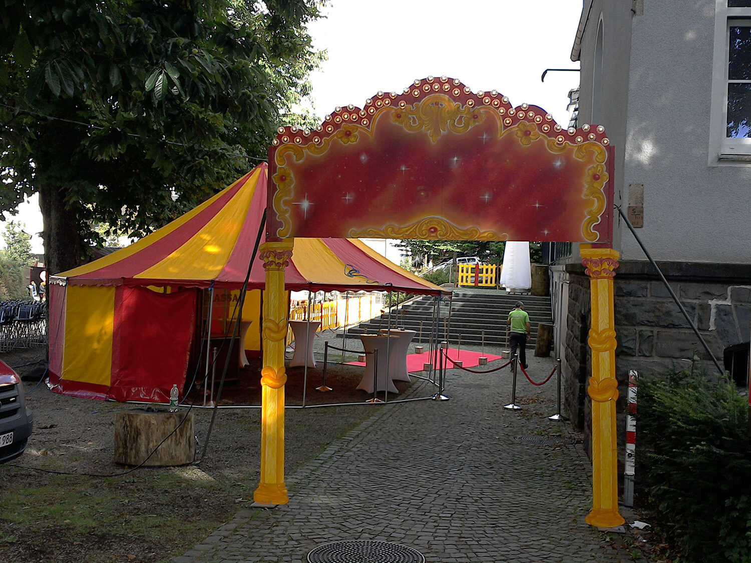 Eingangsbogen in Gelb/ Roten Airbrush mit Kappenbirnen.