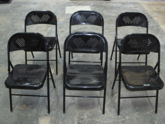 Schicke Schwarze Klappstühle als Einzelbestuhlung für Zelte, Open- Air oder Indoorveranstaltungen.