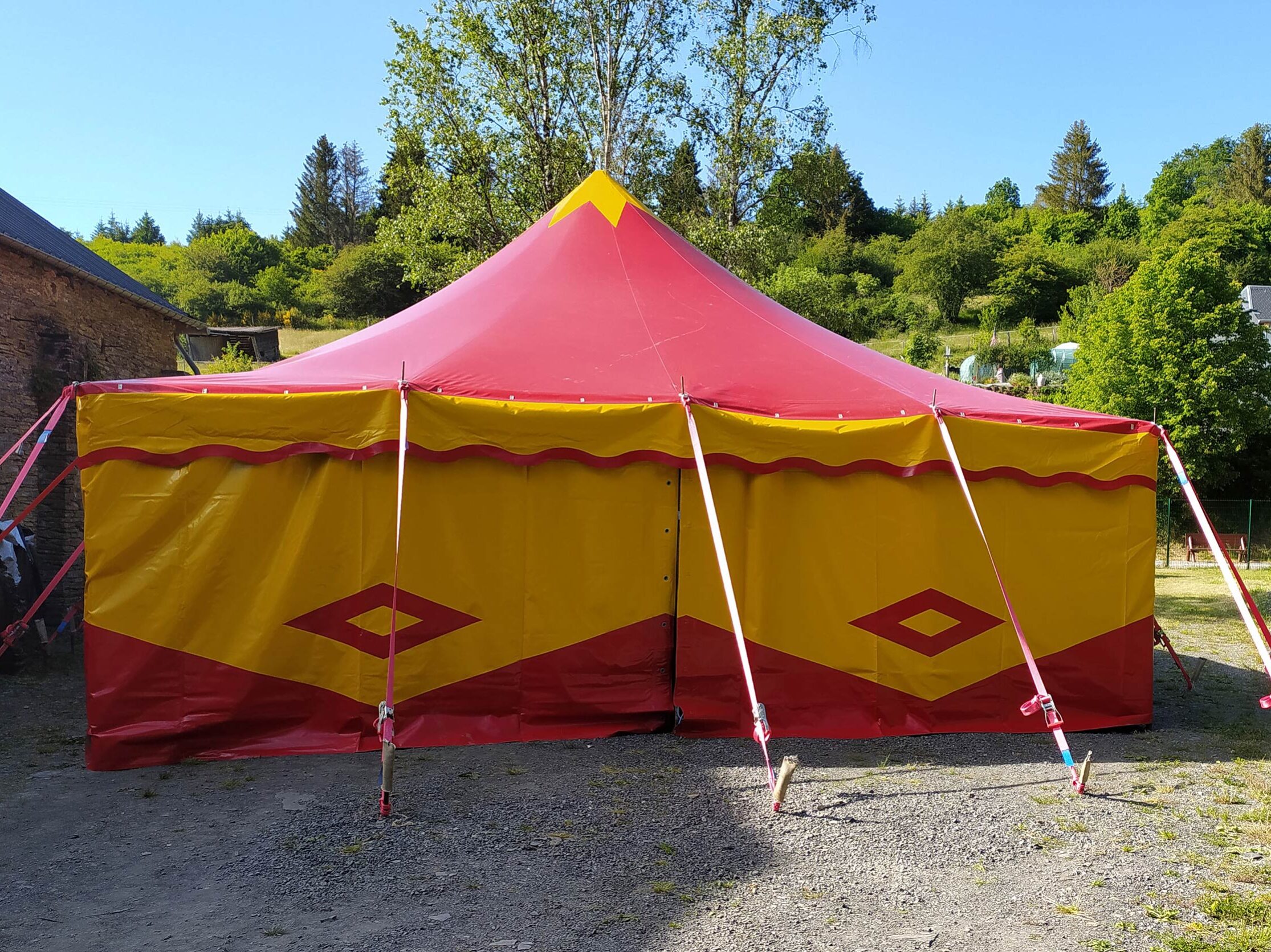 Zirkuszelt 14m Rund – 156 qm rot-gelb